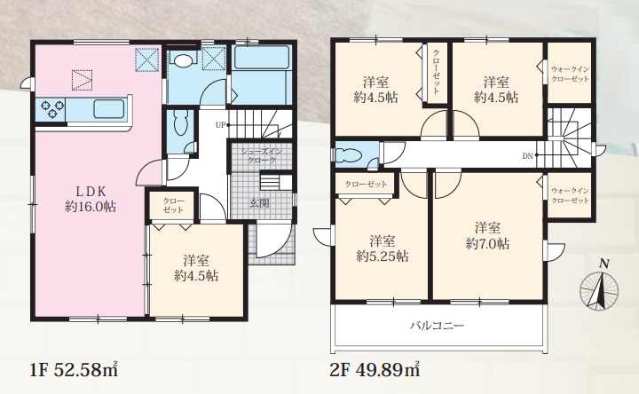 LDK16.0畳 1階 1室 洋室4.5畳 1階 1室 洋室4.5畳 2階 2室 洋室5.25畳 2階 1室 洋室7.0畳 2階 1室 |
