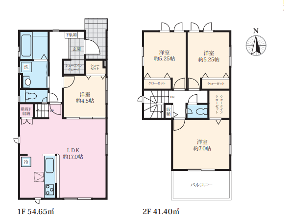 間取内容 LDK17.0畳 1階 1室  洋室4.5畳 1階 1室  洋室7.0畳 2階 1室  洋室5.25畳 2階 2室